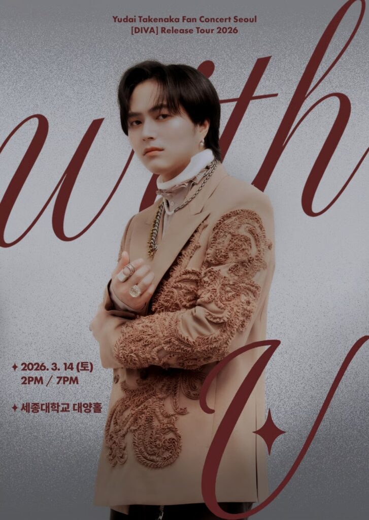 こうした中、竹中雄大は初のソロアルバム『DIVA(ディバ)』のリリースを記念し、2026年3月14日(土)午後2時と7時の2公演で、世宗大学校 大洋ホールにてファンコンサートを開催する。「竹中雄大 ファンコンサート ソウル with U[DIVA]Release Tour 2026」は、時代を超えて愛される初ソロアルバム『DIVA(ディバ)』の名曲の数々とともに、韓国ファンと時間と空間の境界を越えて呼吸を合わせたいという竹中雄大の真心と率直な想いが込められた、特別な時間となる予定だ。